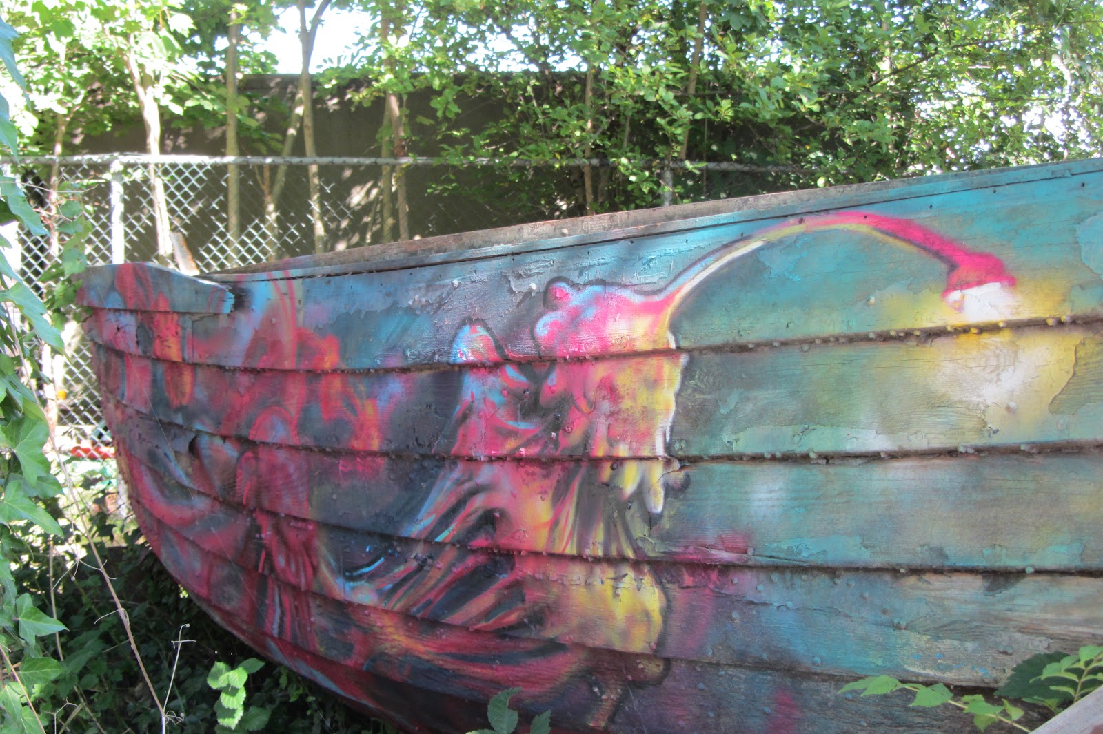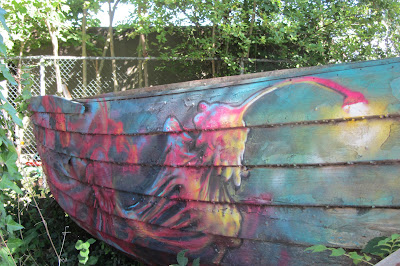 When I was little I had a book about animals and sea life which featured these amazing fish that live so deep down in the ocean that it's completely dark. They have integrated this kind of light that stems from the top of their head so they can see where they're going... Was amazed to see one beautifully painted on the side of this boat in Amsterdam Noord.
