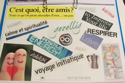 Yesterday I came back from a stressful afternoon at work and though I was tempted to space out and just watch series on my computer, I resisted and instead got out a pile of old magazines and my trusty scissors and glue to do some 'cutting and pasting'.This is one of the best therapeutic activities I can do to calm my brain. I get into this zone where all I can see are colours and pictures and words that catch my eye. It really relaxes me and I was happy of the result.