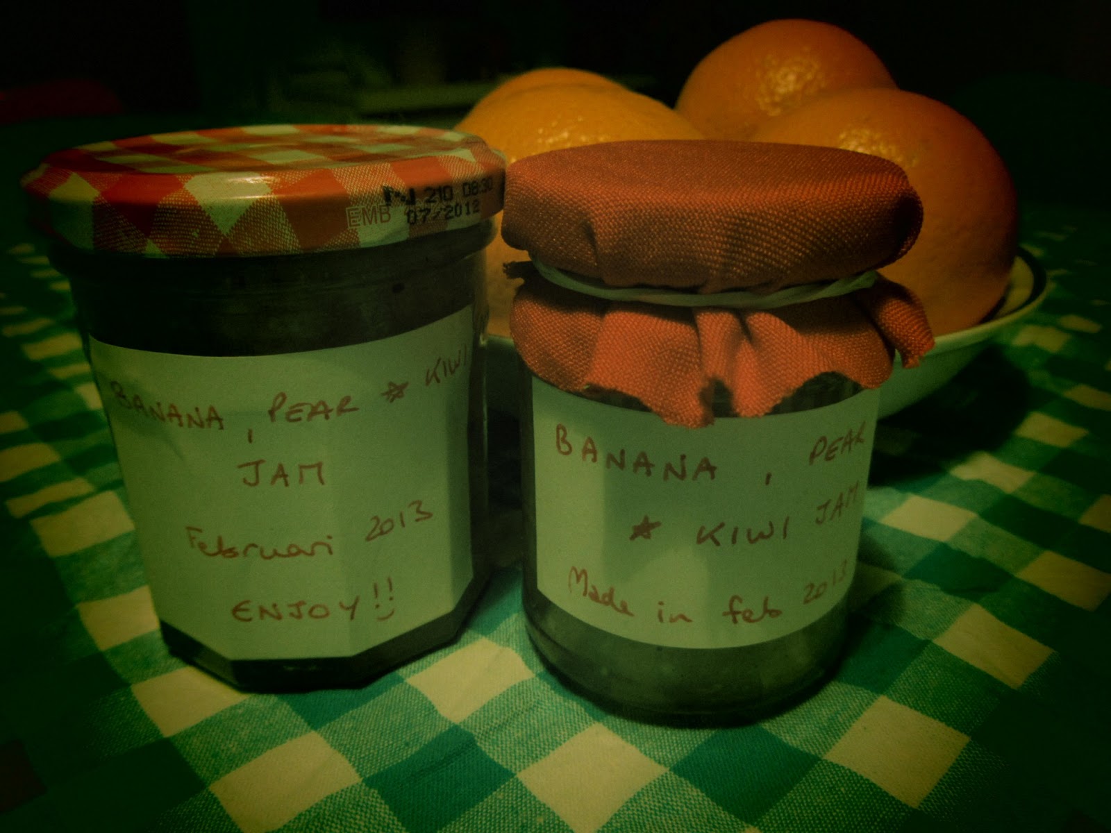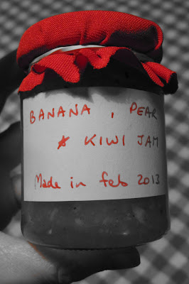 I like making jam as small gifts to friends. I save especially my quite small pots as they make for cute little gifts and it means I can make more pots. The last touch once the jam has cooled is to make the labels. I like to make them all unique and state the date so I remember when I made them. The trick to stick labels onto glass is to take normal white paper, write on it and dip it in milk. Then place it on the side of the pot and let it dry, it will stick nicely. Sometimes I also cut a circle of fabric to decorate the top of the pots.